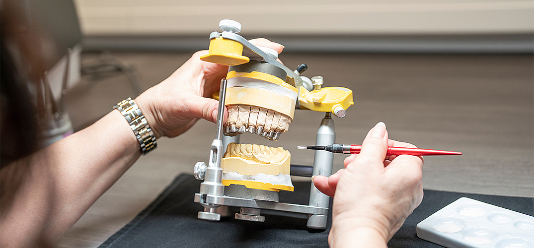 Alles aus einer Hand Größtmöglichen Service bieten wir Ihnen durch das praxiseigene Dentallabor. Drei Zahntechniker/innen stellen Ihren Zahnersatz individuell und mit höchster Präzision für Sie her. Die enge Zusammenarbeit zwischen Patienten, Zahnarzt und Zahntechniker schafft die Grundlage für Ihr strahlendes Lächeln.